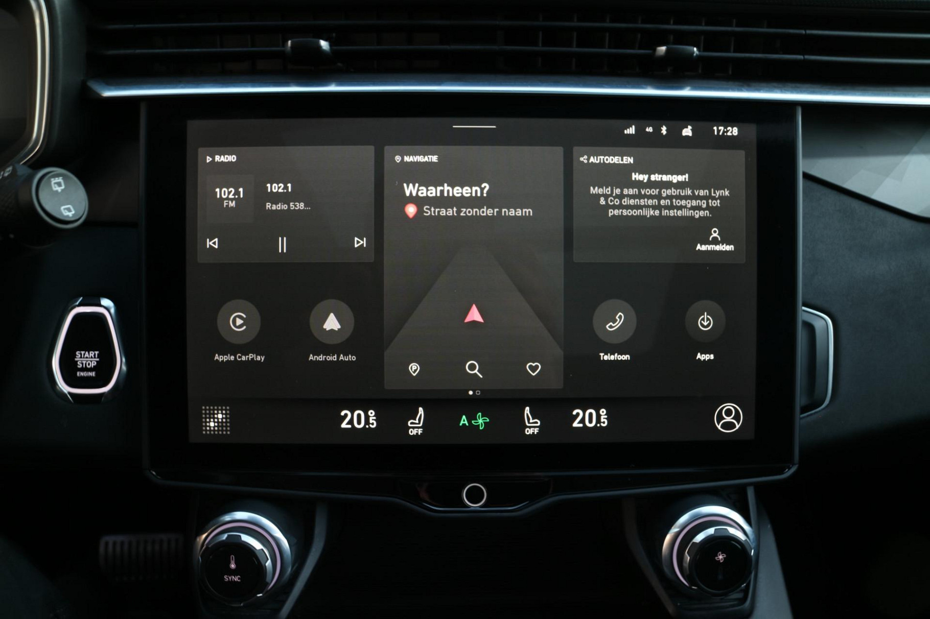 Het digitale dashboard stelt u in staat uw cockpitinterface te personaliseren. Met adaptive cruise control houdt de auto zelfstandig afstand tot uw voorligger. Een veiligheidsverhogende optie waarmee u comfortabel onderweg bent. In de file rijden vreet concentratie. Daarom komt de file assistent te hulp om veilig afstand te houden en automatisch te stoppen als uw voorligger stilstaat. U kunt tijdens de rit uw ogen steeds op de weg houden, want het audio-installatiesysteem (met DAB!) en het full map navigatiesysteem kunt u bedienen vanaf het stuur of met spraak. Telefoon onderweg aan de lader? Daar komt geen kabeltje aan te pas, want deze Lynk & Co 01 is voorzien van een draadloze oplaadmogelijkheid voor telefoons. De uitrusting van deze auto is met WIFI-hotspot, achteropkomend verkeer waarschuwing, automatische airconditioning, parkeersensoren achter, regensensor en keyless entry behoorlijk compleet.